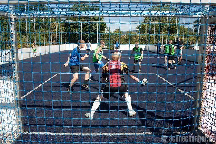 - 4 Feldspieler und 1 fester Torwart sind auf dem Feld, Wechsel sind fliegend möglich. Anzahl der Teammitglieder ist nicht beschränkt!