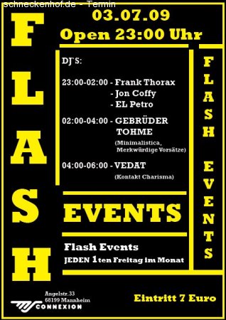Flash geht am 03.07.09 in die 2.Runde an diesem Abend freuen wir uns auf GEBRÜDER TOHME (MINIMALISTICA, MERKWÜRDIGE VORSÄTZE ) VEDAT (Kontakt, Charisma) Frank Thorax Jon Coffy EL Petro 0 Kommentare zu diesem Event