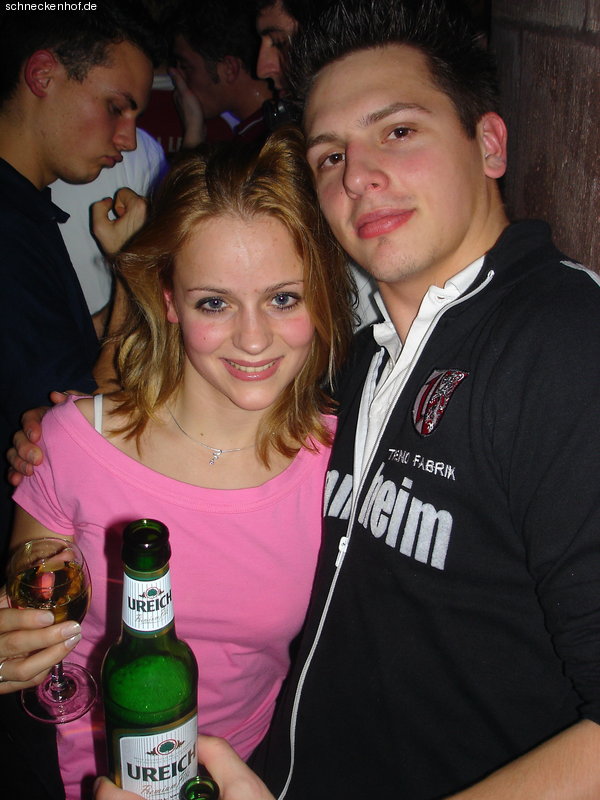 ein schönes klischebild, sie mit einem freundlichen lächeln und einem gläschen sekt,ich mit 68er pulli und gleich 2 mannemer bier...