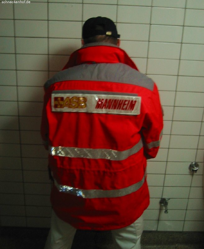 Jeder Hippi muß mal Pipi... Hoffentlich hat er sich danach die Finger (und ...) gewaschen - denn man weiß ja nie wo er seine Finger danach hinsteckt! Aber mal ganz nebenbei: wir sind froh daß wir von den Sanis wohl behütet werden!